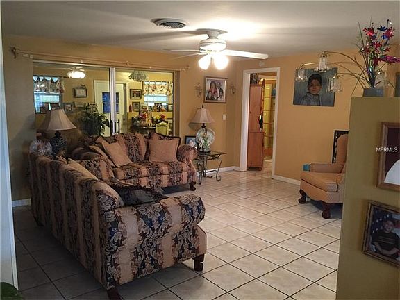 Beautiful updated concrete block construction 3 bedroom and possibly 4 bedroom or office, a/c and roof 2012, updated kitchen, ceramic title flooring, updated bathrooms. Enjoy Florida "Outdoor living" with huge enclose porch at front and rear of the house. Large chain fenced, Rear yard includes large storage shed and room to set a fire pit.
