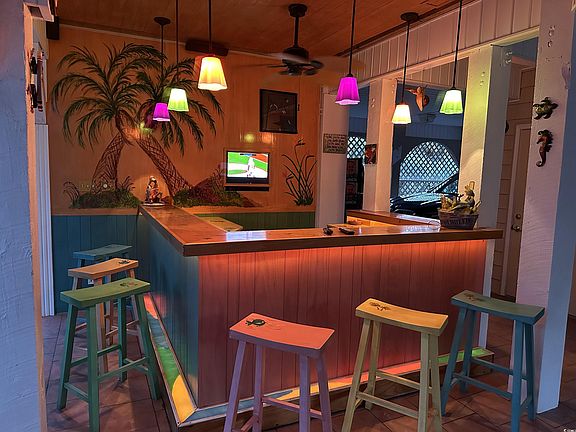 Conveniently located in Palms 5th Avenue South, a very short walking distance to North Myrtle Beach Main Street, the Shag Capital of the World and yearly fun street festivals. This custom-built raised beach house with a 3-LEVEL RESIDENTIAL ELEVATOR AND HEATED POOL , just a short 3.5 block walk or golf cart ride to the sandy shores of the Atlantic Ocean (see attached picture). Custom upgrades galore including built in Tiki Bar with porcelain flooring great for parties, adjacent refrigerator with icemaker, etched/sealed driveway and parking area, parking under house for two cars and golf cart, hardwood floors on all levels, new Trex decking on rear 10X16 with vinyl railings, Trex flooring on large front porch with vinyl rails and ceiling fans, kitchen granite counter tops, computer area granite counter top, quartz counter tops in bathrooms with Mexican Talavera sinks, enclosed tiled Carolina room with removable plexiglass panels for summer or winter use, downstairs ½ bath close to pool, recent HVAC and pool heater replacement, Wi-Fi thermostats and garage door openers, covered area below rear deck with tin ceiling/ceiling fan. Downtown North Myrtle Beach is nearby for annual festivities and McLean Park for a casual stroll or picnic. Local grocery, restaurants, Lowes, Home Depot, and Walmart nearby, a golf cart drive away. East side of Highway 17, this property has never flooded since built as it sits on the outside edge of the FEMA flood maps. The heavy gauge partial blue tin roof stands out across the span of the front porch and trimming down each side of the house. HVAC system replaced 2021 both inside and outside units. LG Wash Tower and Samsung French Door Refrigerator convey with sale. Mature palm trees and landscaping, recent new zoysia sod. Great natural light, plantation shudders on front windows and upstairs front window dormers, Lots and lots of storage upstairs accessible via the elevator, His/Her’s walk-in closets, corner Jacuzzi in Master Bath, Cable or High-Speed fiber available, remote control or Wi-Fi Levolor shades in Carolina room, irrigation with timer, free trash and recycle pickup weekly courtesy of City of North Myrtle Beach, Low HOA Fees. This house has NEVER been smoked in. House will be available for addition costs to leave fully furnished along with outdoor pool table and custom golf cart. Don’t let this one slip away, they don’t make them like this anymore!