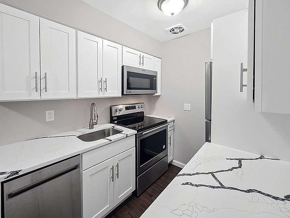 Wow! move right in! This completely renovated condo was designed with you in mind. This exquisite one bedroom one bathroom has been meticulously upgraded to provide the ultimate combination of comfort and modern living. This condo features a brand new kitchen with upgraded stainless steel appliances, new quartz countertops, new hardwood flooring throughout, and a brand new beautifully done bathroom. Freshly painted, and a large bedroom with a spacious walk in closet. Parking spot in the garage below. This condos fantastic location offers unmatched convenience's with numerous restaurants just steps away. Additionally, with easy access to public transportation, commuting to NYC is effortless. Don't miss out on this opportunity it wont last long!