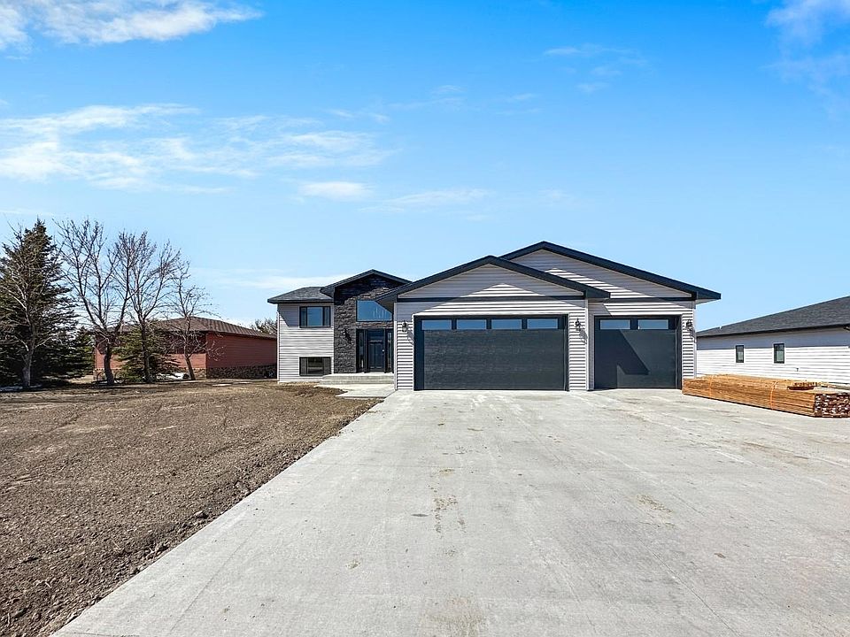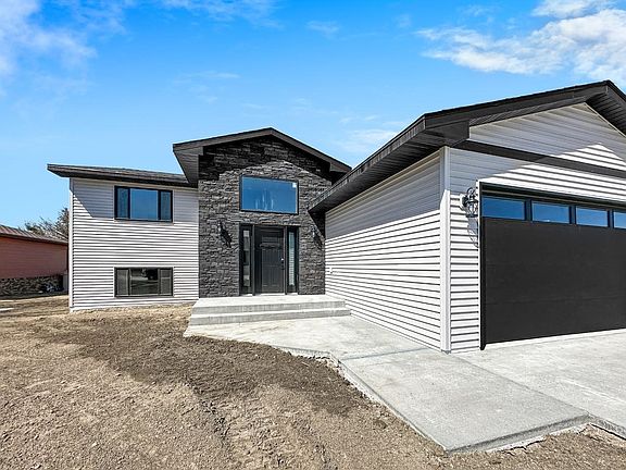 Construction has started with an anticipated completion of April 15th, 2023. This spacious split foyer home is fully finished for $399,900! This smartly designed split foyer has a G R A N D entry with tons of stone work, stately front door and window accents to bring in loads of sunshine plus a WALK OUT basement! The kitchen, living, and dining spaces are seamlessly united thanks to the high quality plank flooring. The kitchen features abundant shaker style white cabinetry, laminate countertops, $3500 appliance allowance, and a well positioned island for entertaining. Down the hall are two bedrooms including a spacious master with private bath. The walk-out family room is super sized and will accommodate multiple furniture arrangements or gaming options. Two additional bedrooms, finished laundry space and third full bathroom complete this space. The triple garage is insulated, sheet rocked and has a floor drain. Situated on the west side of Surrey, this home is just minutes from all the conveniences of Minot but offers the escape of small town living and a smaller school system. Affordably priced at only $399,900 - this value is hard to beat. This home was quality constructed by L O C A L contractor (Precision Plus Construction LLC) and all local sub-contractors! All selections for this home have already been made to keep the timeline on track. Please inquire with your agent for construction status and exterior/interior finishes.
