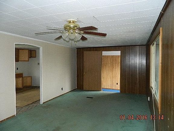 Mobile home on permanent foundation on large level lot, covered front porch, attached garage, storage shed. Dead end street, needs some TLC Proof of funds for all cash offers. Minimum $1000 EMD in form of a cashiers check required for all offers.