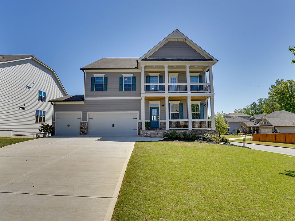 Impeccably maintained, like-new home in sought after Falls at Hickory Flat neighborhood. Home features 4 spacious bedrooms plus an office / bedroom on the main level and 4 bathrooms. Open concept living with a chef's kitchen, large island and tons of light open to the family room. Oversized upper floor flex space is perfect for home office, man cave or teen getaway. Unfinished walk-out terrace level with expanded patio and firepit. Corner lot with 3 car garage. Rocking chair front porch and large flat grassy front and backyard. Gated swim/tennis community with highly rated schools. Minutes away from amazing shopping and restaurants.