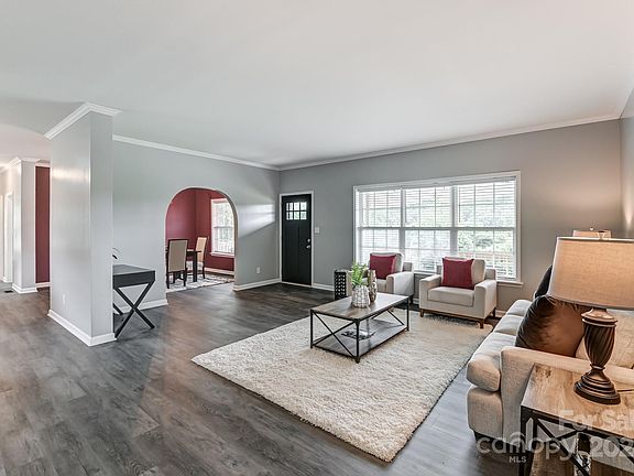 One story 3 bed, 2 bath home on almost one full acre on quiet street, with country setting just minutes from Downtown Kannapolis. No HOA and no city taxes! This home has been impeccably maintained both inside and out. Large living room and dining room. Kitchen with island breakfast bar and window over the sink. New flooring throughout (LVP in living areas and carpet in bedrooms). Split bedroom plan. Primary suite with large walk-in shower and double vanity with granite top. Walk-in closet. Secondary bedrooms each have walk-in closets. Large laundry room. Spacious front and back yards; back yard adjoins natural area. Outbuilding. Storm doors front and back. Covered, rocking chair front porch. Great home back on market at no fault to seller or house!