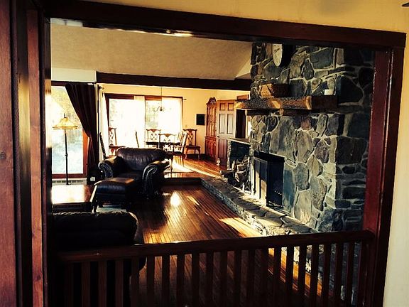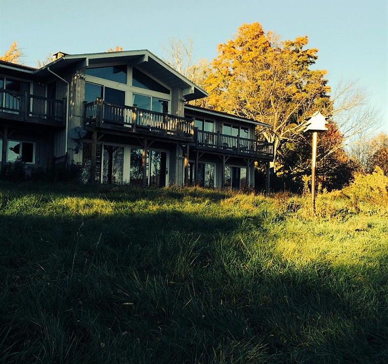 Diamond in the rough split level ranch with 11 sliding glass doors providing scenic views in all directions. Very private. Needs some updating but has incredible potential. Approx 1860 sqft on the first level, an additional 1500 sqft of finished living area can be found on the lower level. Three total lots included in sale of 88.3 acres.