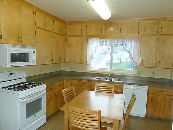 Clean and tidy!! Move in ready. Nostalgic two story home with classic birch kitchen with updated counter tops/sink. Two bedrooms upstairs and bath with old fashioned soaker tub. Main floor offers living room, dining room, kitchen, main floor utility/mud room, and additional storage room. Partial basement is mechanical area. Pleasant fenced yard with garden shed and detached garage. Roof new in 2018.