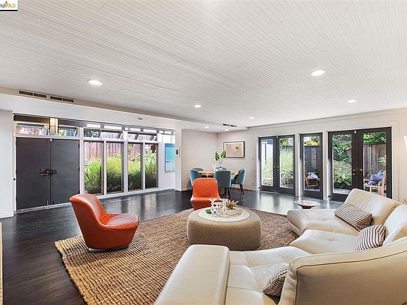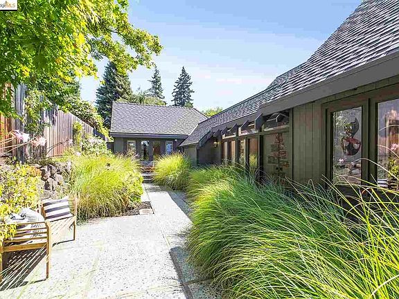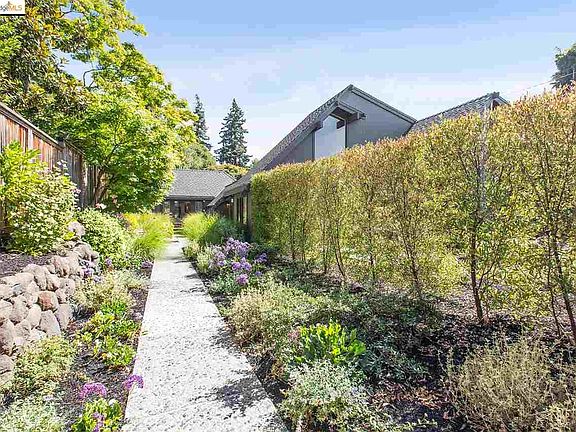 Sunny contemporary on flat .25 acre parcel in heart of Piedmont. Private, serene environment in highly sought-after location. Oversized windows and doors connect to multiple idyllic indoor/outdoor venues. Open floor plan. Recorded as a two bedroom, home has flexible spaces for up to four generous sized bedrooms. Detached studio with half bath opens to landscaped, park-like grounds with native plants and large lawn.