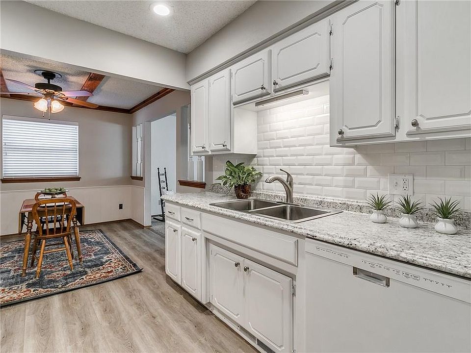 Oh my updates! The landscaping out front gives you all the curb appeal and has obviously been finished with so much love and care. You will feel the pride of ownership with your gorgeous Japanese maple and flowerbeds with happy mums and stacked stone border. Kitchen has fresh paint, bright white cabinets, new wood vinyl plank floors, dishwasher, countertops and sparkling white backsplash. Cozy fireplace in the living room and a brand new back door to the spacious backyard. A fantastic master bathroom was gutted and completely redone with a new vanity and fabulous extra sized subway tile shower. The guest bath even has new subway tile too. Great big mature trees, a neighborhood park and a walking path to John Ross Elementary. The sellers did not have pets in this showstopper of a home and we know you must see it today and make it yours.