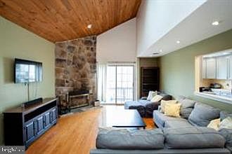 Private owner, well-maintained second floor condo - 2 bedrooms, 2 full bathrooms - Floor to ceiling stone fireplace with two story vaulted ceiling in spacious living room, large master bedroom, newer stainless steel appliances, generous storage space (many closets and large attic), private second-story deck right off living room - Hardwood floors on main floor, brand new carpets in bedrooms - Washer/dryer included on main floor - Cable/FIOS ready with central Heat/AC - Convenient location -- close to PA Turnpike, Route 611, Horsham Business Campus Neighborhood Description Money Magazine named Horsham PA one of the Best Places to Live