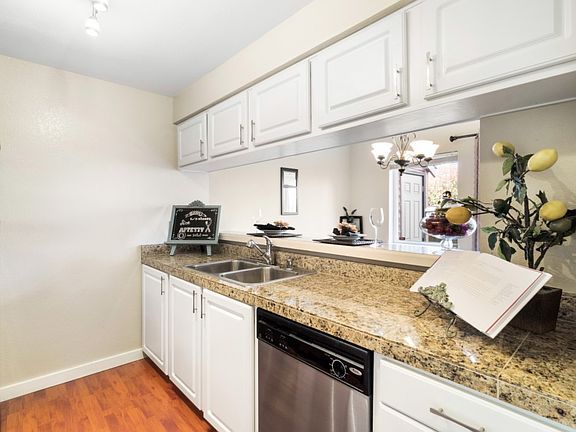 Beautifully updated townhome with backyard close to schools, shopping, and freeway access. Huge master bedroom with double closets and full bath. Multiple storage closets, spacious, and assigned carport parking! Kitchen features granite counters, stainless steel appliances, pantry, and breakfast bar. Bright, open, and spacious with dining room, powder room, full size washer/dryer, patio great for bbq's, and wood burning fireplace. New carpet 1 year ago and many updates throughout! See it today!