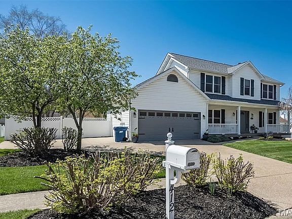 Welcome to this beautiful 2-story home located in the desired Presidio Subdivision, Orchard Farm School District. This expansive home with a covered front porch offers 3 PLUS bedrooms, partially finished lower level and a built-in saltwater swimming pool. Enter the driveway and note the expanded parking area/basketball hoop alongside the 2+ sized garage with room for a workbench. Front/rear stairway was recently updated and improved. Great Room w/gas fireplace. Main floor Office with double door entry. The Kitchen features granite counters, island with seating, custom cabinetry, coffee bar and Breakfast Room. Upstairs is a bonus Family Room expanded by current owner to include the 4th bedroom (can readily be restored if preferred). Partially finished lower level includes wet bar with seating, built-in refrigerator, en suite sleeping room and walkout to backyard/pool area. HURRY TO VIEW! OPEN HOUSE FRIDAY 5-7 PM AND SUNDAY NOON TO 2