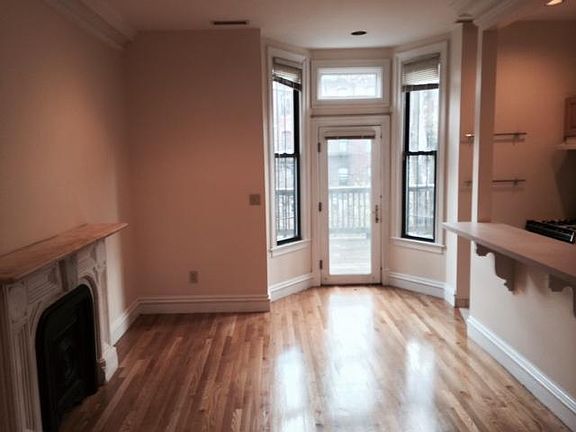 South End... Columbus Ave steps to Copley... Totally renovated 2-bed/1.5-bath occupying entire second and third floors of a three-unit well-maintained brownstone. First level features hardwood floors throughout, front living room with bay window and marble gas fireplace, fully-applianced kitchen with maple cabinets, gas cooking and bar area separating it from formal dining room, renovated half-bath. Spacious private deck overlooking hidden garden. Upper Level features two spacious bedrooms with great closet space and one full renovated tiled bath. Central Air. Washer/Dryer in Unit. Gas heat not included. Cats allowed; No dogs. NO BROKER FEE. Available 9/1 for $3600. Video tour available