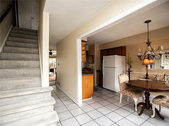 This LARGE 2BR unit is situated in the back of Pennsbury Village overlooking the woods and golf course. No through traffic, extra parking (covered parking available for rent) and just steps to the park make this unit one you will not want to miss! Dining room, Kitchen, Laundry, Half Bath and Living room all on the 1st floor. Large sliding glass doors lead to patio. Bright kitchen has ceramic tile, wood cabinets and neutral countertops. All appliances stay. Stairs lead to 2 oversized bedrooms and updated full bath. Ceiling fans, original hardwood and great closet space in bedrooms - Master has custom closet! Pennsbury Community has basketball courts, tennis courts, and a swimming pool. Pennsbury Commons has a pub, hair salon, laundromat. Condo fee includes exterior maintenance, water and gas (see complete list). Conveniently located with easy access to I79, 376, Robinson township shopping, 15-20 minutes from the airport!
