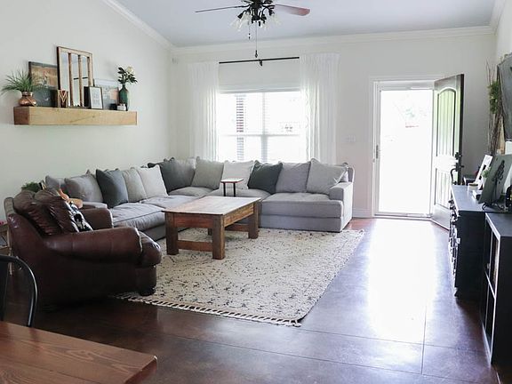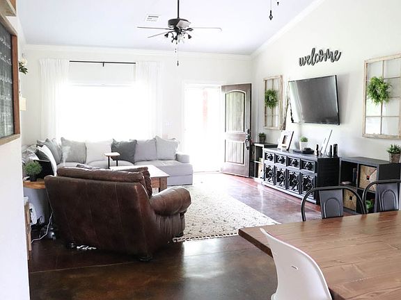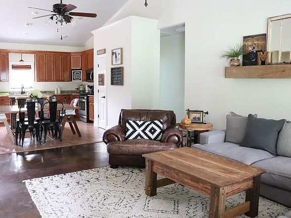 Open floor plan home on double lot in Fort Gibson. 3 bedroom, 2 bath, vaulted ceiling, oversized attached single car garage, spacious laundry room. New paint in living and kitchen. Stainless steel appliances. Central heat and air, central vacuum, pantry in kitchen. Alarm system. 24' x 32' detached workshop with electricity and garage door. Welcoming front porch, and large backyard with patio.