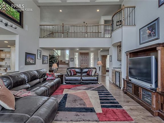 Spectacular stucco beauty in an amazing cul-de-sac location. The entry greets you with tall vaulted ceilings and gorgeous wood floors. Chef's dream kitchen with full granite slab, stainless appliances and big open feel. Bonus buffet staging area with more counter space and 3rd oven. Beautiful formal dining with tons of natural light. Finished walkout basement features an amazing wine cellar, wet bar, poker room and theater room. Huge master bedroom with walk-in shower and fireplace. Big back deck with awesome views! Expansive great room has tons of room for entertaining. Master bedroom and upper level bedrooms are very nicely laid out with a bridge over the great room separating them. Two upper level bedrooms share a jack and jill bathroom and the other has its own attached bath. The basement has 2 more bedrooms one of which is currently set up as a really cool theater room. The craftsmanship and style that went into creating the basement is amazing. True wine lovers dream with an amazing wine cellar with tall glass walls. Massive wet bar is ready for entertaining with tons of granite and cool lighting. This home is a true custom property that flows amazingly well.