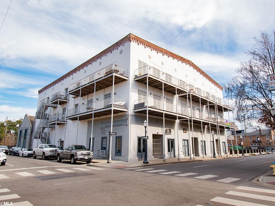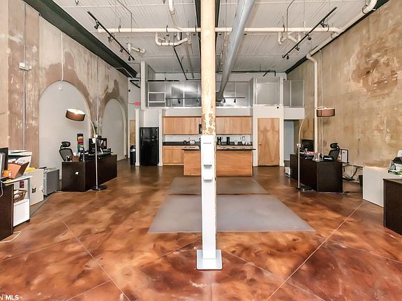Downtown living at it's best. Very unique, nothing else like it! This is one of the largest units in the building - 1ST floor facing Dauphin St. Can be residential or commercial (Currently permitted for commercial use). Beautiful scored & stained concrete floors, granite countertops, new appliances & cabinets. High ceilings, exposed beams & duct work, brick/stucco walls. Washer & dryer hook ups. Gated entrance with community courtyard. Private fenced parking and elevator. Only a few blocks from the parade route. Tub was taken out for commercial use so would have to be re-installed if someone were to use as a residence. Current tenant would like to stay and rent back through Oct. 2022 but can get out with a 30 days notice. Condo dues are $474 a month and covers water, common electricity, grounds maintenance, garbage, exterior maintenance, exterior insurance. All updates per the seller. Listing company makes no representation as to accuracy of square footage; buyer to verify.