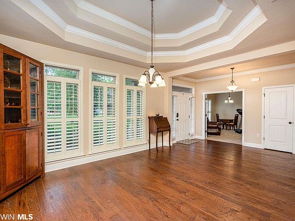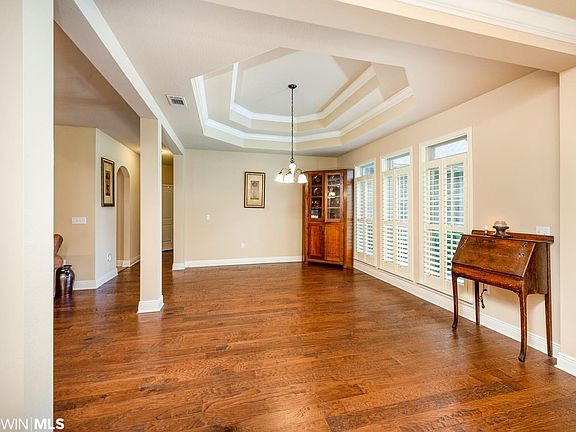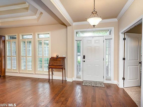 GORGEOUS CUL-DE-SAC HOME IN BEAUTIFUL CAMBRIDGE PARKE! 100% PRISTINE CONDITION! The virtual tour is a must see. Lushly landscaped lot, glorious flowering shrubs, fruit trees, raised bed garden, partially fenced & backs to a stocked pond. It doesn't get better than this! Gold Fortified resale with low insurance rates. Upon entry from the slate tiled front porch, you will note the modern open floor plan with gleaming hardwoods in entry foyer, great room and dining room. Multi-dimensional 9, 10, & 11' ceilings with upgraded trim, plantation shutters, gas log/wood-burning fireplace. Incredible master with luxury bath, high ceilings and tons of crown. Granite counters throughout kitchen & all baths. Upgraded textured tile in all wet areas and on the huge 26.9 x 12' screened back porch over looking the peaceful back yard and pond. Sited next to a heavily wooded common area where no home will be built giving you highly desirable privacy. Outstanding office/den which could be 5th BR. Adorable He/She Shed for all your yard equipment! Gutters, fabric hurricane shields, no flood insurance required, and so convenient to S Baldwin Hospital & medical offices, great shopping & dining, OWA & quaint downtown Foley park, all make this home an incredible find. The finest of one level living in a serene setting. Upgrades galore & lovingly maintained. SURE TO PLEASE!!