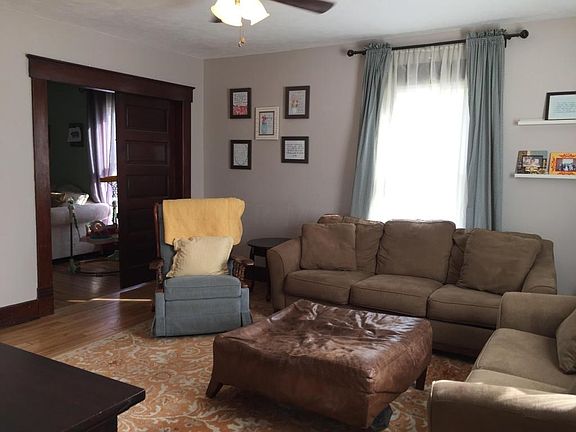 Don't miss this large 4, possible 5 bedroom home (could be main level bedroom) with many updates. New 200 amp electrical service; entire house re-wired; new lighting, ceiling fans. Original plaster restored, upstairs bath - new plumbing, stool and shower. 1/2 bath updated. Original hard wood floors have been uncovered and look great! Front room windows updated in 2015, opened entry into dining room from front entry, updated kitchen counters, backsplash, sink and faucet. Back yard fence is also new. Appliances stay (except washer and dryer). Play set is negotiable.