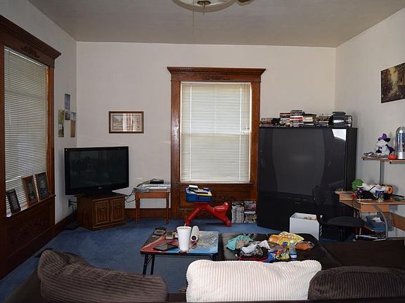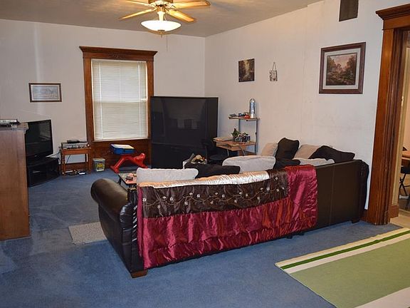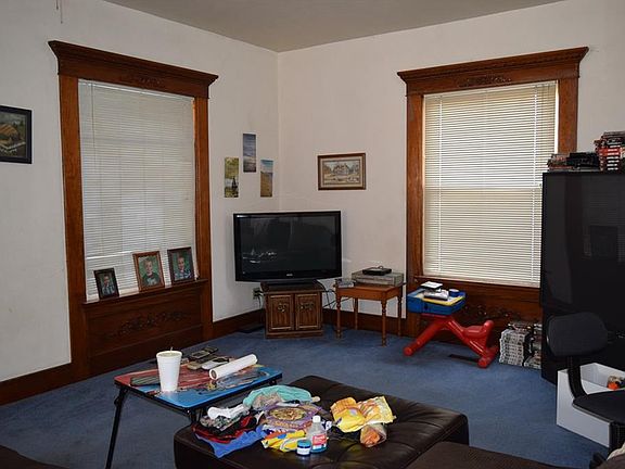 Gorgeous woodwork, beautiful stairway, and a huge rec room are found in this 4 bedroom, 2 bath home. A full basement, enclosed front porch and a 1 car attached garage. Newer roof and vinyl siding in 2014. A large eat-in style kitchen and a spot for an office just off the rec room. An additional storage building in the rear. Call today!