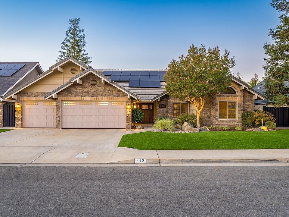 Welcome to your new home at 412 E Swallow Ct within the exclusive Woodward Lakes Community. This stunning home features 2,452 sqft, 4 bedrooms, 2 bathrooms, and has owned solar. As you drive up to this beautiful home, you'll notice the exquisite attention to detail right away. The drought-tolerant landscaping features high end synthetic grass in the front yard and the home looks grand with cultured stone veneer accents. The Family Room has a 20' ceiling and at the centerpiece is the fireplace which is also covered in a cultured stone veneer with a custom wood mantel. Just off the family room is an incredible home office with an oversized closet that could also be used as a secluded 4th bedroom. The upstairs loft overlooks the family room and is currently set up as a virtual classroom for the kids. The kitchen showcases granite counters with a beautiful leather finish. The GE cafe Smart French-Door Double Wall Oven with Convection and GE cafe refrigerator are the focal points of this upscale kitchen. There is also a wine cooler for those of you who are connoisseurs. The backyard is your slice of heaven. Stuccoed concrete block walls are around the full perimeter of the backyard. All concrete decking was installed in the past few years and the pool and spa upgraded with a PebbleTec finish. Inspections have been completed along with applicable repairs, making this home turn-key and ready for your family. Don't regret that you missed out on this incredible home!