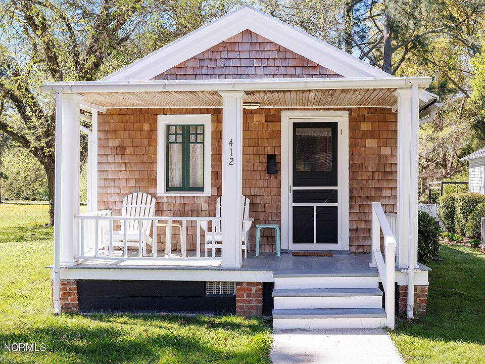 Be a part of Edenton's Historic Cotton Mill Village! This home is one of 3 remaining cottages in the Mill that were acquired by Sears Roebuck & Company. Told to have been brought in by train, this cottage sits beside a protected green space, previous home of many baseball games and Village potlucks. Wood shake, original metal roof and 500+ square feet of southern charm! This one bedroom, open concept home is truly a tiny house dream! Detached shed for storage, front porch for sitting, and sidewalk lined streets within a cottage community add to this must-see property!