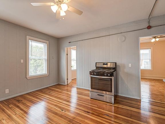 Newly redone apartment featuring remodeled kitchen and bath! Hardwood floors throughout, replacement windows, and brand new stainless appliances. True one bedroom with separate living room, eat in kitchen, and bonus room for office or storage. Available now! No smoking or pets. One year lease. Available now. No smoking or pets. Gas and electricity separate. Off street parking included for one vehicle.