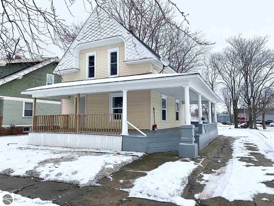 You will appreciate the covered wrap around porch as you arrive to tour this 4 bedroom, 1 bathroom classic 1.5 story home! As you enter the front door, you will be greeted by a large foyer and the option to go upstairs or stay on the main level. On the main level you will immediately notice the new carpet and large windows that allow a ton of natural light. The main level floorplan includes a living room, dining room, bedroom, kitchen, bathroom, and laundry room. Upstairs you will find three more bedrooms and they have new carpet and fresh paint. There is a full basement for storage and a low maintenance yard!