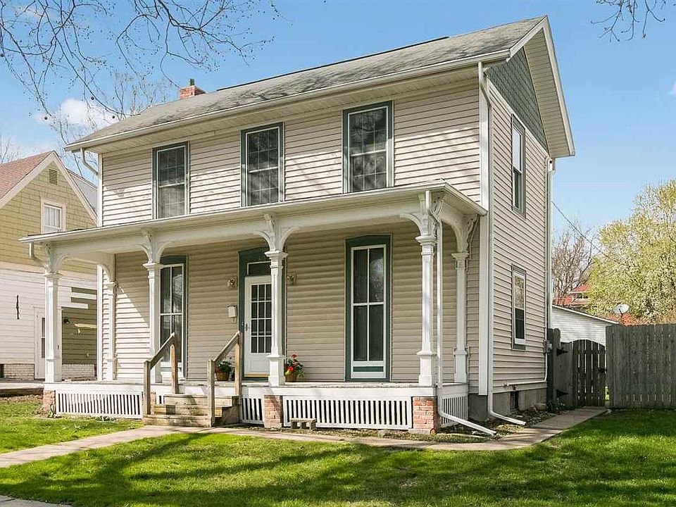 North side vintage 2 story within a few blocks from downtown & campus. Great entertaining spaces inside and out with open main floor living areas, inviting front porch, expansive back deck & large fenced backyard. Original appointments include lighting fixtures, exposed brick & hardwood floors; no maintenance siding, newer windows & furnace. Detached 2 car garage. 5 minute walk to weekend breakfast at Bluebird Diner, Banditos or Hamburg Inn.