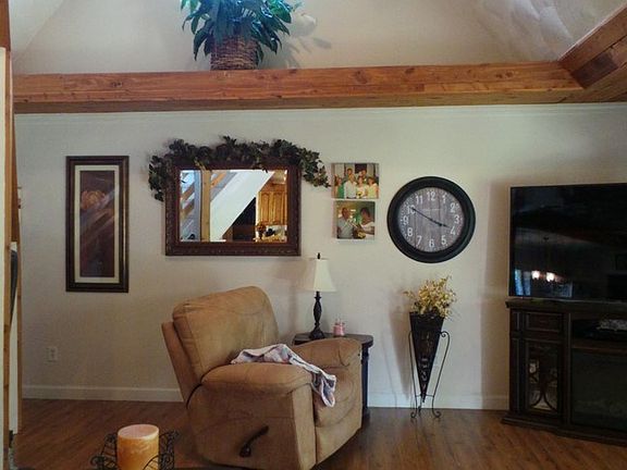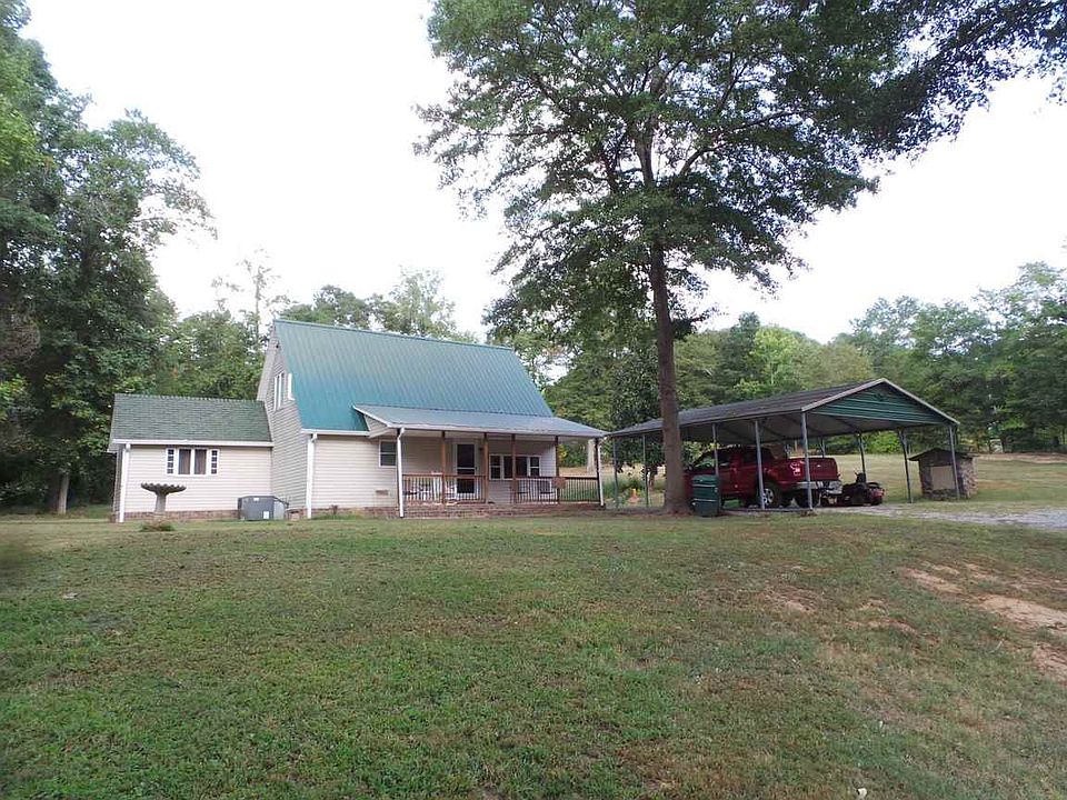 Very unique home in private, country setting on 1.77 acres. Currently house is set up as a 1BR/1BA but could be used as a 2BR. Cathedral ceiling 2-story family room with laminate floors. Nicely equipped kitchen with island and plenty of cabinetry. Huge MBR on 2nd level has 2 closets and 2 large built-in cabinets for storage. Bath has soaking tub, double sinks and separate stand-up shower. Extra room off kitchen used as a 2nd BR and laundry. Property includes a 16'x16' shop w/power, ramp and lean-to. Detached 24'x26 metal carport. Covered concrete front porch and covered wood deck back porch. Metal roof on main house and shingle roof on addition (where 2nd BR is). Huge yard and good privacy. Fresh well water too.