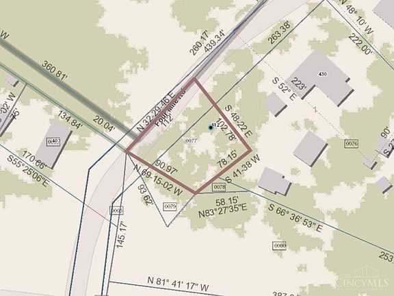 County parcel 500-0403-0077, 0.2067 acre deeded, less .0618 acre RoW easement = .1449 acre. May require Anderson Township zoning variance to build upon. NO mobile home. Could be used for crop agriculture. Four Mile Creek runs along eastern side. Owner/agent.