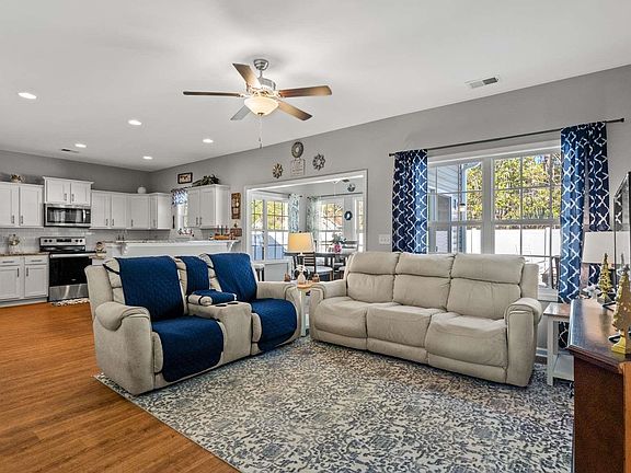 Welcome Home! Built in 2020 by Great Southern Homes and filled with upgrades! The Primary suite is on the main level with a walk-in closet, large tub and separate shower. Sit in the sunroom you overlook the backyard with custom stone landscaping around entire home. Added Privacy fence for your exclusive backyard oasis with lawn irrigation, an extended patio, and above ground swimming pool (it might be cold that water is crystal clear as it runs on a timer.) The two storage sheds, Curtain Rods and Blinds will convey. Owners have Added Rain Gutters, custom closet organizer, makes this a truly move in ready home! 2 bedrooms upstairs, and plenty of closet space! The Garage has commercial grade flooring and is equipped with enough depth to fit most full size trucks and the driveway could fit 4 additional cars easily. (Custom cabinets in Garage will not convey with the sale-but could be negotiable) Great southern homes are built with a high energy efficiency rating upgraded insulation in the attic. Reflective roof sheeting to lower the attic temperature. Construction is complete in this development, so you don’t have to worry about any noise or adding anything extra!