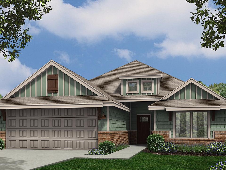 The Julie Floorplan has a total of 1,830 SQFT of living space with 4 bedrooms and 2 full bath. Storm shelter included as a standard in the 2 car garage. Home includes a fully sodded front and back yard, in ground sprinkler system, and covered front and back porch. Back patio has an outdoor fireplace, great for entertaining friends and family. Living Area has wood look tile, gorgeous gas ignition fireplace, with stack stone surround. Barn door secludes the rest of the home from the bedrooms! Kitchen has 3CM granite countertops, slide in gas range, and spacious walk in pantry. Master suite features a boxed ceiling detail with crown molding and bathroom featuring separate vanities, large walk in shower, whirlpool tub and spacious walk in closet! Walk in closet has access to Utility room! Mud bench for extra storage! Home includes Rinnai Tankless Heater, R-44 Insulation, Whole home air purification, and solarboards.