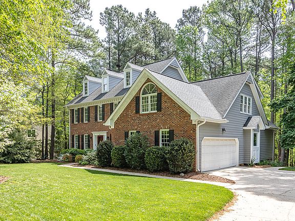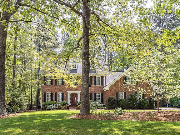 Charming spacious 4 bedroom home on a beautiful private wooded .60 acre lot in coveted Wyndham subdivision in North Raleigh. Gorgeous oak floors on the first floor with crown molding and chair rails. Family room with built-in bookcase and brick fireplace, opens to updated kitchen (gas and electric stove connections), sunny breakfast nook with skylights, and screened-in porch. Trek Decking,. Primary Suites on BOTH first and second floors. Enormous bonus room with wet bar, built-in bookcases, storage, and separate back stairway. Huge unfinished attic on the third floor has potential for additional finished space. Location provides easy access to downtown, RTP, RDU Airport, and is close to A.E.Finley YMCA, Baileywick Park and Greenways, WakeMed North, Whole Foods, and a future Trader Joe's!