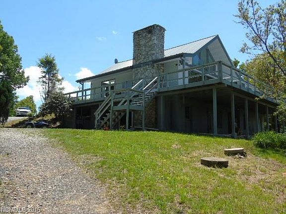 Extremely private "top of the world" setting at end of 1/2 mile private road with magnificent views of Mount Mitchell and the Black Mountains, the highest range in the eastern US. Garden, fruit trees, grape arbor, gazebo, and large studio barn encompass house with surround deck for 360 degree view. Acreage includes potential for several view lots to be sold. Meadows and pasture. Property is ridge top and fairly level between 3400 and 3500 elevation.