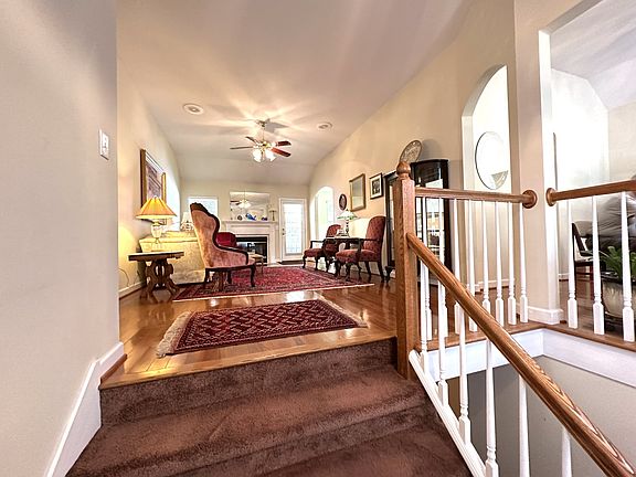 This nice, one owner home in Harborview has a very open & spacious floorplan.Situated on a beautiful wooded/peaceful lot at the end of a culdesac.Owners have truly made an oasis in their backyard that you can enjoy.This home has 3 BR, 2 BA on the main level.Nice kitchen w/granite counters & lots of cabinets & stroage.Look out the breakfast area window & watch the hummingbirds! Family rm w/gas FP & Bose stereo system.Spacious formal DR.Primary BR upstairs w/trey ceiling, garden tub/sep shower/dbl vanities.Mounted TV will remain.2 other BRs on main level.Downstairs is a cozy den,full bath, laundry rm, & 4th BR.Could all be a mother-in law suite! Oversized 2 car garage is deep w/storage.