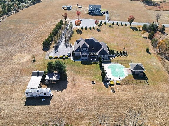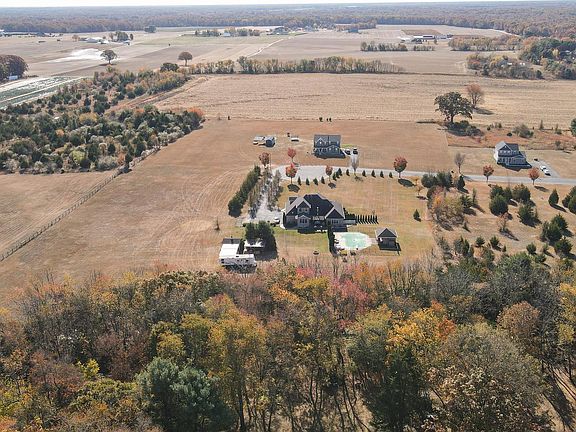 Welcome to this incredible new listing! 🌟 This custom-built luxury retreat offers endless comfort and an abundance of features, all set on a serene 4.24-acre lot off Morton Road 🌳. As you approach, you’re greeted by a long, lighted, and landscaped driveway that winds back to a private cul-de-sac 🏡, enhancing the sense of peace and privacy. This spacious 5-bedroom, 3.5-bath, 2-story home beautifully combines elegance and functionality. Step inside to a stunning open-concept layout with high ceilings, recessed lighting, and abundant natural light throughout ☀. The main level includes two full bedrooms and two full bathrooms, ideal for guests or an in-law suite 🛏, along with a cozy living area featuring a wood-burning fireplace for warmth and ambiance 🔥. The gourmet kitchen is a dream come true 🍽, featuring glazed cabinetry accented by a contrasting glazed island, ample storage, a wine cooler 🍷, a 6-burner stovetop, under-cabinet lighting, and even a pot filler for easy meal prep. Adjoining the kitchen is a beautiful sunroom 🌞—a versatile space perfect for year-round relaxation or entertaining. The main floor also includes a stylish half bath and a laundry room with built-in shelving 🧺. Enhanced security features, like a hardwired interactive system with cameras on all doors and windows, offer peace of mind, while a tankless water heater provides efficient, endless hot water 🚿. Upstairs, you’ll find three more spacious bedrooms 🛌 and an additional full bathroom 🛁, with views overlooking the main level for a beautiful sense of connection. The finished basement provides extra living space and ample storage 🗄, complete with sliding glass doors that open up to the outdoors 🌿. With two pull-down attics, the home offers even more storage solutions, making it as practical as it is luxurious. Outdoors, a true resort-style oasis awaits 🌴. You’ll find a fenced, inground saltwater pool 🏊♂ with a paver patio, pergola, and solar cover for heating, plus an outdoor wood furnace for additional warmth 🌞🔥. Adjacent to the pool is a fully equipped pool house and bar, complete with granite countertops, a full kitchen, a half bath, and even an outdoor shower 🚿—perfect for hosting gatherings or simply relaxing in style. The exterior landscaping includes a 14-zone sprinkler system, designed with a dedicated watering feature for flower beds on both the front porch and back patio 🌺. And for those driving electric, the house is equipped with a Tesla charger ⚡, making this property both beautiful and environmentally friendly! This property is truly a blend of beauty, luxury, and convenience in a stunning, private setting. Showings begin at the open house on Saturday and Sunday from 11 AM to 1 PM—don’t miss the chance to experience this exceptional home for yourself! 🗝