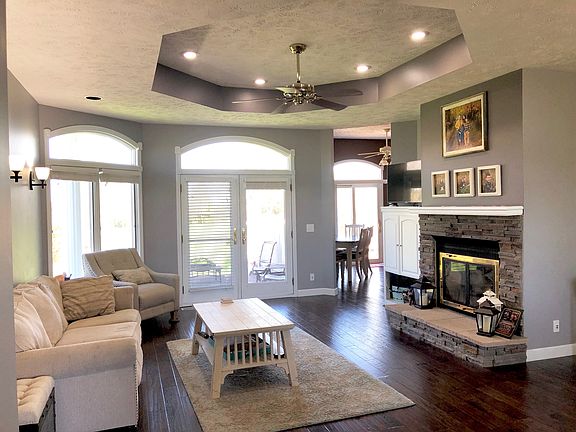 Beautiful brick/hardboard sided, 4 bds, 3 ba home located on the Centura Hills golf course in Cairo. Kitchen has light maple cabinets and granite counters; Newly remodeled master bath with stand lone tub; Engineered hardwood floors; fireplace; new carpet in upstairs bds; Geothermal HVAC system; fenced back deck w/hot tub; main floor laundry; Office, Family rm w/bar; Rec rm w/pool table(negotiable)