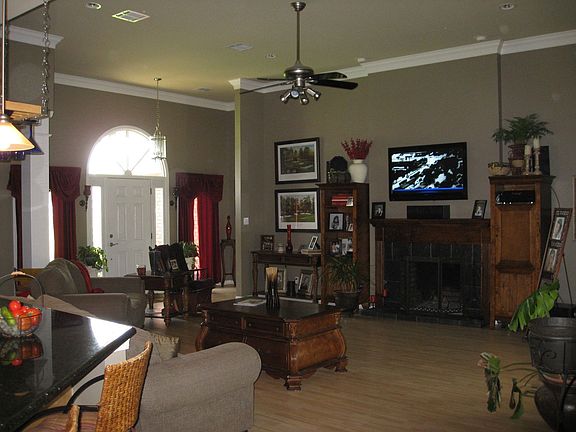 Custom built 4 bedroom 2.5 bath open floorplan, granite countertop, stainless appliances, formal dining room, split floor plan, large 26x22 covered back porch overlooking gorgeous salt water gunite pool with attached spa. Half bath on side of garage for easy pool access. Large detached garage (deep enough for boats or trailers) as well as a spacious bonus room above the detached garage. Main house two car garage also has a separate golf cart garage. New front landscaping as well as new energy efficient windows throughout house. Private backyard overlooking the golf course. Membership initiation fees are waived for new Calvert residents. Come see this gorgeous home today!!