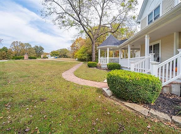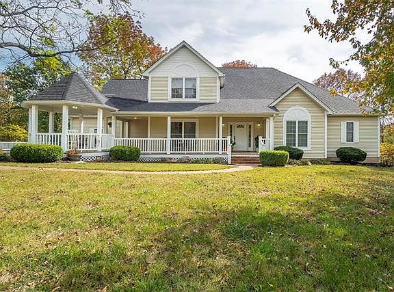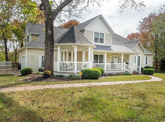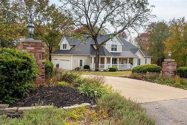 Discover serenity in the magnificent stately 1 1/2 story home on 4 picturesque acres. Imagine having your morning coffee on your wrap around porch with a gazebo or in the 3 seasons room. Grand 2 story entry foyer with hardwood floors. Separate dining room with coffered ceiling & sitting room. The great room has vaulted ceilings, skylights, a gas fireplace & built-in bookshelves, huge glass doors leading to the deck. Gourmet kitchen with 42-inch cabinets, new wall oven, pantry & adjoining breakfast room, glass doors to the sunroom. The main floor master bedroom includes a luxury bath& his & her walk-in closets. The upper level has 3 additional large bedrooms, 1 bedroom is a large home office with AT&T highspeed broadband internet ready for your home office. Unfinished lower level walkout & rough-in for a bath. 3 car garage, alarm system, zoned heating, & cooling with dual units. Close to R7 Schools & I55, 5-10 minutes to shopping in Festus. Room for an inground pool and detached garage.