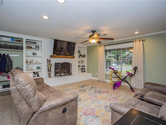 The living room features a wood burning fireplace and custom built shelves along each side of the fireplace. The kitchen has granite counter tops and is equipped with double ovens and ample cabinet space all the way around the kitchen. It also has a separate dining area, large bonus room/den, and half bath downstairs! Upstairs has 4 spacious bedrooms and 2 full baths. There is a water filtration system that goes through the entire home. High speed fiber optic cable has been installed in the home as well! It has a large covered back patio looking out into the fenced pool area which separates it from the rest of the yard. It also has a brand new energy efficient pool pump. The sellers have also updated the wireless security system. Blown in insulation was also just added to help energy bills stay low. The home is extremely well maintained and move in ready!! Schedule your showing today because it won't last long!