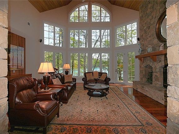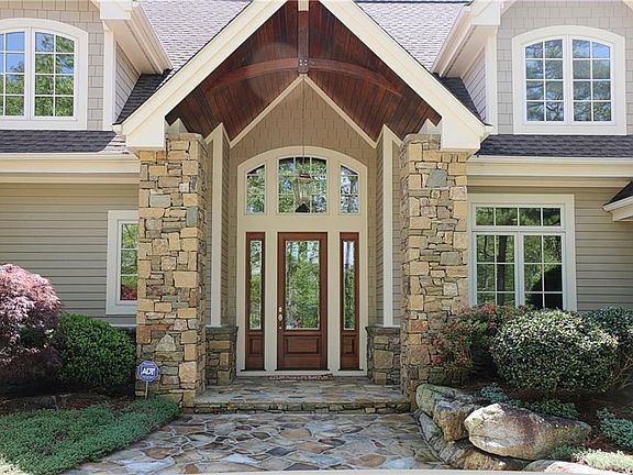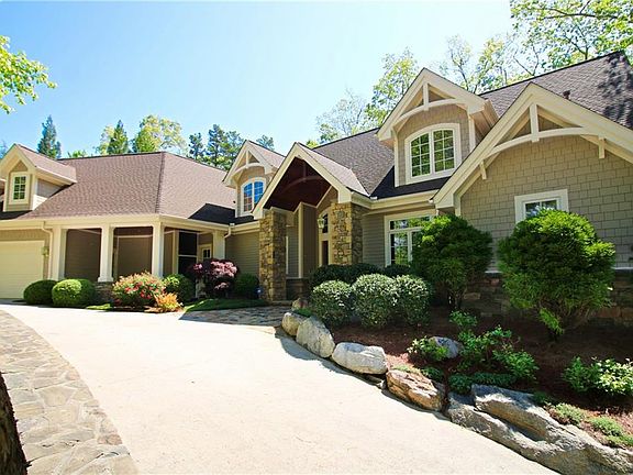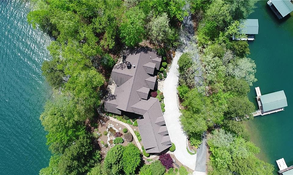 Immediate occupancy! Enjoy this spring and summer! Waterfront homes on scenic Lake Keowee's northern shores are inherently desirable, but this home stands apart even from such prestigious peers. One of only three homes on a cloistered peninsula in The Cliffs at Keowee Falls, the lovingly maintained residence spreads across a gentle rise of just under an acre. Both the front and the back of the home are leisurely steps from the lake. On one side lies a protected, deep-water cove with a covered dock in a very private and quiet location, away from other boat traffic. The other side renders a wide channel with long lake vistas, complete with a waterside flagstone terrace for taking in the astounding views. Fastidiously groomed, hardwood-shaded paths and stone steps gracefully wind throughout the property, complemented by landscaping with native rhododendrons, various evergreens, boulder-lined retaining walls, and an impressive water feature with bubbling falls and pond. The home's fully-furnished interior opens to a great room with immense stone columns and fireplace and showcases the lake's azure waters through a two-story wall of windows. Rustic Brazilian cherry floors line the living areas, which flow to the kitchen with double-level island, custom cherry cabinetry, and black soapstone apron sink, as well as to the dining room displaying several of the home's hand-crafted Stickley pieces. The main level also holds a study and generous master suite with terrace access. Upstairs are two bedrooms with en suite baths, and a bonus room spanning the three-car garage below. With both interior and exterior access, and with a private bath and kitchenette, the bonus room offers numerous possibilities. Outdoor living areas incorporate a large terrace and adjoining screened porch with fireplace. In addition to the aforementioned furnishings, the purchase price includes all contents (minus personal affects), for a truly turn-key, ready-to-enjoy-NOW, opportunity. Coupled with The Cliffs at Keowee Fall's full suite of country-club amenities, this move-in ready home has everything needed to make your first of many memories infused with Lake Keowee's charms.