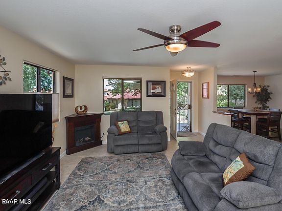 Welcome to 412 Jimson Way, a beautifully maintained home nestled in the desirable Tanglewood Hills neighborhood of Prescott. This charming Townhouse features 2 bedrooms, 2 bathrooms, and a modern open concept perfect for entertainment. The well-appointed kitchen features updated appliances, Quartz countertops, ample cabinetry including a pantry. With a formal dining area and a convenient laundry area, this home offers sufficient space and is truly a must see! The master suite offers a private en-suite bath and a large closet. The guest bedroom offers and large walk-in closet and has its own outside access. Outside the front sitting area provides a tranquil place to enjoy the beautifully landscaped common area. The back of the home is gated and either offers a patio area or a carport. The