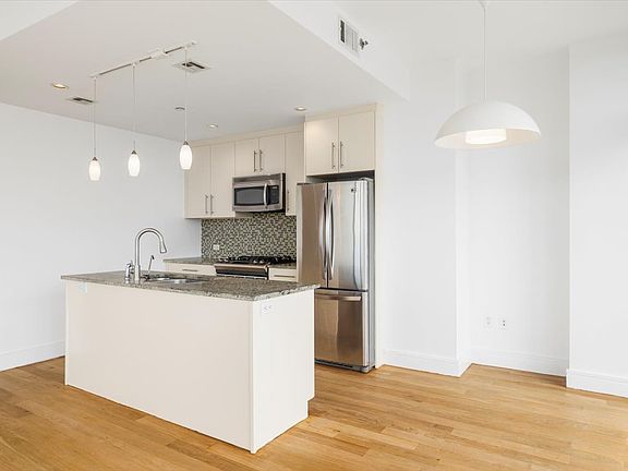 Apt features two bedrooms, two baths, eat-in kitchen, gorgeous open views, balcony, hardwood floors, granite countertops, stainless steel appliances, central air, washer/dryer, plenty of closets.