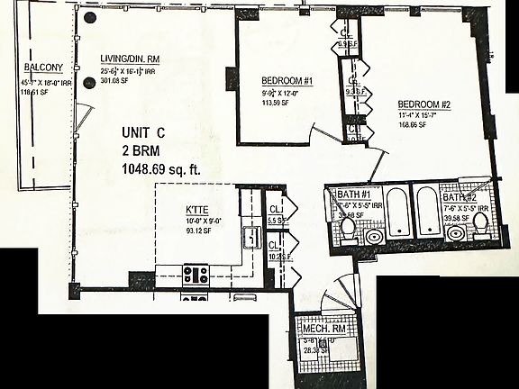 - Total interior livable area: 1,049 sqft