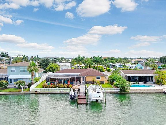 WATERFRONT SOUGHT AFTER ISLAND ESTATES ON CLEARWATER BEACH A BOATERS PARADISE!! ENTER INTO THE TRAVERTINE FOYER THRU THE CUSTOM ENTRY DOOR WITH GLASS BLOCK SIDE LITES, EXTENSIVE CROWN MOLDING, 4 BEDROOMS, 3 BATHS, OVERSIZED 2 CAR COURTYARD GARAGE, ALMOST 2,100 SQ.FT. OF UPDATED OPEN LIVING AREA! NEWER IMPACT GLASS WINDOWS AND DOORS, EXTENSIVE PLANK LAMINATE FLOORING, NEW ROOF 2019, NEWER WATER SOFTNER, SOLAR FOR HW TANK, NEW 5 TON A/C IN 2018, NEWER HW TANK WITH DIVERTER, GORGEOUS NEWER KITCHEN OPENS TO GREAT ROOM, STAINLESS APPLIANCES WITH DESIGNER STAINLESS HOOD, 2 BLT IN OVENS, SOFT CLOSE EUROPEAN CABINETRY, GRANITE COUNTER WITH BREAKFAST BAR, DESIGNER FANS, BEAUTIFULLY REMODELED BATHROOMS W MARBLE AND GLASS TILES, QUARTZ COUNTER, DESIGNER VANITY CABINET, DESIGNER TILES, UNDERMOUNT SINKS, UPDATED PLUMBING FIXTURES, NEWER INTERIOR DOORS AND HARDWARE, CUSTOM CLOSET SYSTEM IN POSH MASTER BEDROOM, FABULOUS TROPICAL OASIS IN REAR POOL AREA SALT WATER POOL, CHISELED TRAVERTINE ON LANAI AND POOL DECKING, REAR PERGOLA, DOCK REDONE IN 2015/2016 WITH NEW POLES, ETC, 1600 LB. JET SKI LIFT, PLUS A 10,000 LB. BOAT LIFT, EXTENDED DRIVE WAY FOR 10 CARS AND MORE! ENJOY YOUR ISLAND LIVING WITH SHOPPING, RESTAURANTS, EASY ACCESS TO TIA AND CLEARWATER/ST. PETE AIRPORT! MINUTES TO CLEARWATER BEACH WITH WHITE SANDY BEACHES! VIEW THIS TROPICAL PARADISE TODAY!