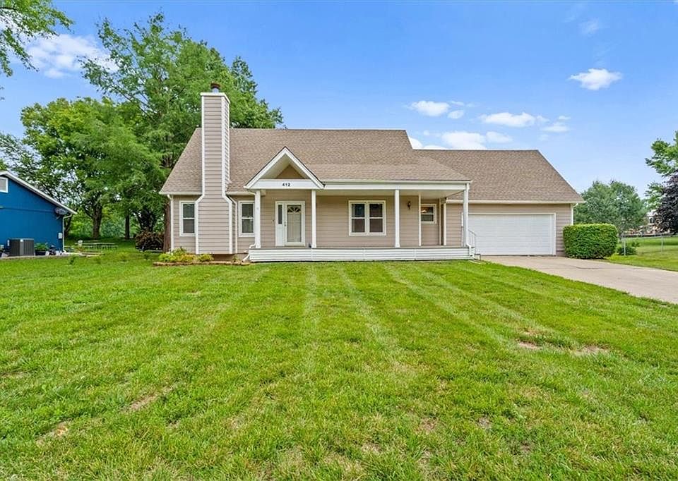 Enjoy evenings on the back deck of this 1 1/2 home that backs to a public park and Raymore Elementary school. There is room to roam with the walking trail around the park just steps away. This one owner home is delightful. The floorplan has the main bedroom and bath on the first floor with two large bedrooms and a second full bath upstairs. The basement is finished and offers additional space. The kitchen is large with tons of cabinets and counter space. All appliances stay with home. The Laundry area is located behind the kitchen and don't miss the large pantry. The two car garage is large. The lot is flat and located on a cul de sac. With the elementary in the backyard and shopping close, this one is a 10!!! The home is being sold "as is"and is in a trust.