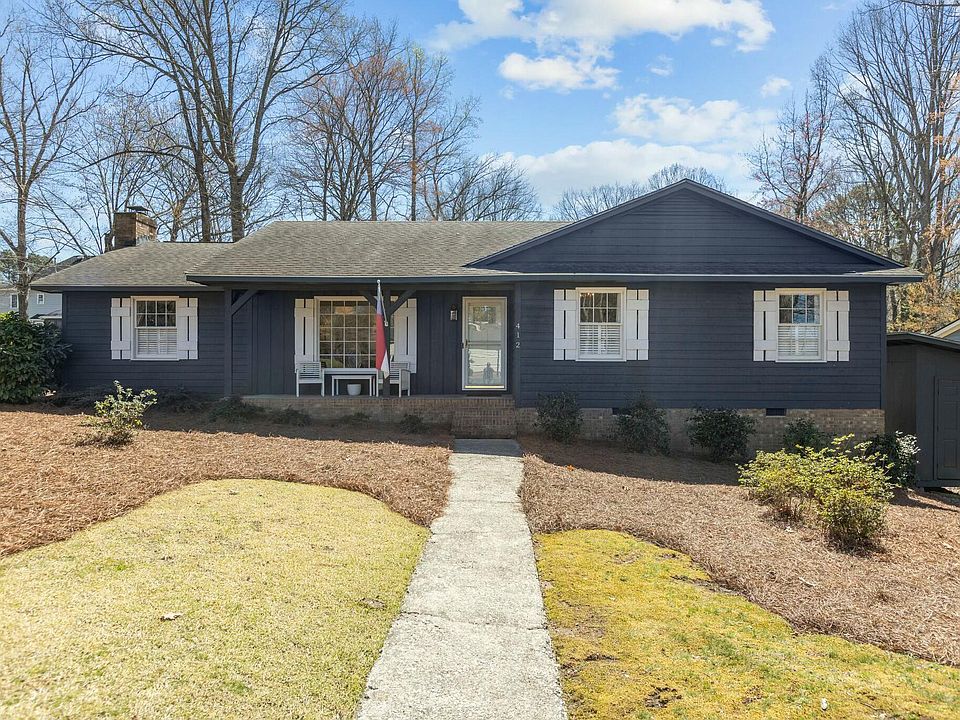 Beautiful Midtown Ranch on a Quiet Cul-de-Sac. This 3-bedroom, 2-bathroom ranch offers modern updates and classic charm. Inside, cohesive updated flooring throughout. One think you're sure to notice... no popcorn ceilings! The spacious kitchen features updated cabinetry, granite countertops, stainless steel appliances, a tile backsplash, and a farmhouse sink, seamlessly flowing into a bright breakfast nook and a large family room with vaulted ceilings, with exposed wood beams. A recently updated bathroom and a 2021 HVAC system provide contemporary comfort. Outside, a screened porch and deck overlook a beautiful backyard, complemented by a detached shed/workshop for extra storage or hobby space. This home's prime location offers close proximity to North Ridge Country Club and the esteemed Ravenscroft School. For shopping, dining, and entertainment, North Hills is just a short drive away, offering a variety of retail stores, restaurants, and cultural events. Outdoor enthusiasts will appreciate the nearby Cedar Hills Park, known for its scenic beauty and recreational facilities, perfect for various activities. Combining modern updates with classic charm, this home is situated within a vibrant community that offers a blend of recreational, educational, and dining options, making it an ideal choice for those seeking both comfort and convenience.