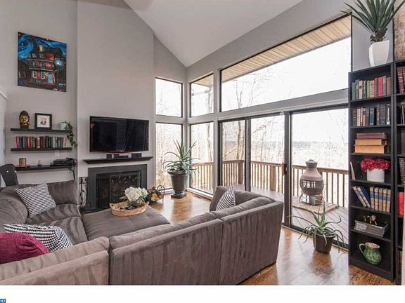 Impressively designed 4BR/3.5BA West Whiteland Townhome in Lynetree Village. This spacious home reveals breathtaking architecture and style, with a stunning must-see nighttime view. This contemporary styled home was designed with the finest attention to detail. Entering from the foyer, the home makes a striking first impression with Cathedral ceilings framed by a wall of windows, leading to spectacular views on your spacious deck. The living room begins the home's open floor plan with hardwood floors and wood-burning fireplace, a wonderful space to watch the home's striking twilight panorama. The dining room is open to the living room and kitchen, and bordered by wainscoting and molding detail. The kitchen exceeds the popular design demands of today, from the exquisite cabinet design and butcher block counter tops, to the gleaming subway tiles. The counter offers bar style seating with the dining area presenting additional seating. The main level features the first bedroom space with hardwood flooring, wainscoting detail, and full en suite bath. The second floor features the striking Master Bedroom. Measuring 30 x 15, this space offers a sitting area, two closets, and an additional area for dressing. The skylight above the master bed creates another opportunity to enjoy the magnificent views. The updated en-suite Master Bath features a luxurious vanity with granite counter top and glass stall shower. From the Master Bedroom, find the loft space with hardwood flooring and two skylights, currently used as an office. The laundry is conveniently located near the master bedroom. The finished lower level presents two additional bedrooms, one currently used a music studio, and full bath with glass stall shower. A sizeable family room or den area with recessed lighting present a wonderful area to entertain and accommodate guests, with the exterior patio and hot tub just outside the sliding glass door. Abundant areas for storage throughout.