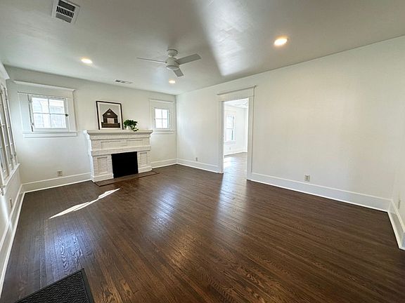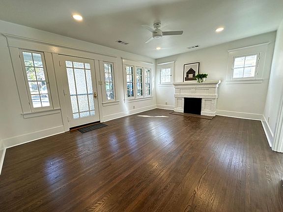 - Two bedrooms with restored hardwood floors, ceiling fans, recessed lighting