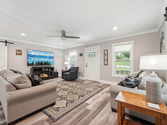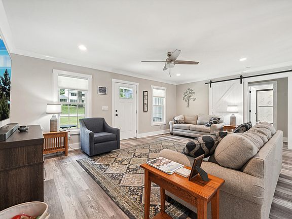 Situated on a well-maintained corner lot, this home's curb appeal is enhanced by landscape lighting down the driveway and at the front of the home where an open and inviting front porch greets you. Step inside to admire the open concept design showcasing beautiful LVP flooring, extensive millwork, and modern finishes throughout. Relish cooking in the white cabinet Kitchen embellished with Granite counters, tile backsplash, SS appliances, and a center island with bar seating. The Dining Room provides easy access to the covered deck overlooking the private tree-lined backyard. You'll love the split bedroom floor plan and huge versatile 2nd-floor Bonus Room offering flexibility for all of your needs. The Primary Suite is complete with a gorgeous en-suite bath featuring a large tiled walk-in shower, separate soaking tub, and a spacious WIC. Two additional bedrooms share a beautifully updated full bath. Additional features include a side entry Garage with storage and a nice-sized Laundry Room featuring white cabinets and a sink.