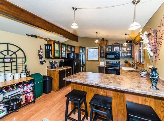 Country living in town! Serene, private, backs up to woods, 3 city lots. Close to schools and park. Lower level has new carpet/tile;full bath w/whirlpool. Newer deck, patio, roofing, landscaping. Possible LL 4th BR; needs closet.